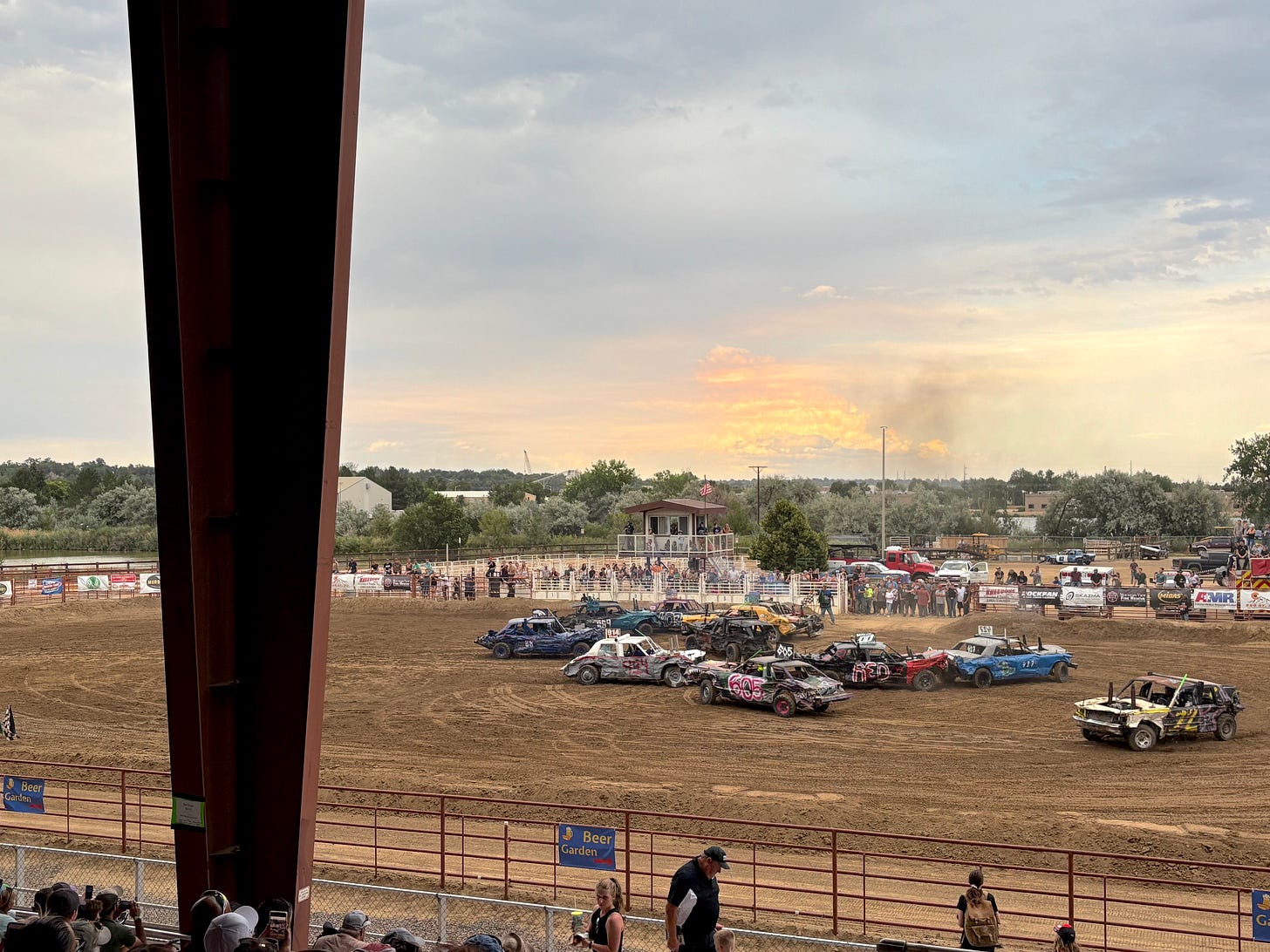 Demolition derby . . . possibly the most American thing. Imagine its conception! “Hey, buddy, let’s smash these old cars together until the last one’s standing. Yeeewwww!!!” The derby kicked off with a sequined cowgirl slamming a sledge hammer onto a contestant’s hood, before a team of Mad Max vehicles charged into one another, fire, smoke, and engine fluid leaking across the dirt arena. Pure entertainment. You can draw a throughline straight from the gladiators in the Coliseum to this spectacle, the type of thing that has gotten people excited for millennia.